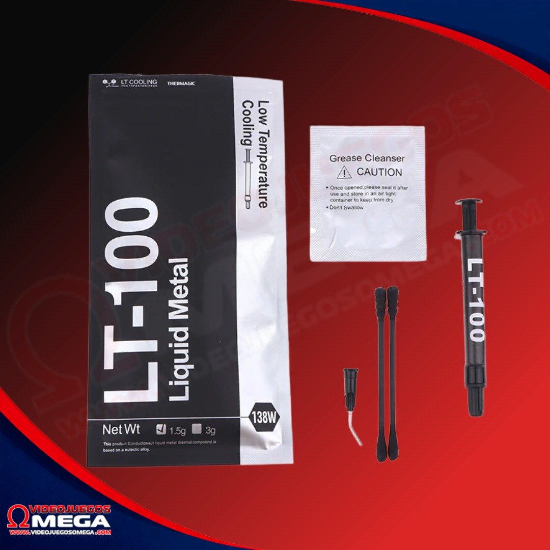 En Videojuegos Omega, sabemos que el clima tropical de Costa Rica exige el máximo rendimiento de los sistemas de enfriamiento. El Metal Líquido LT-100 de 1.5g es un compuesto térmico de alto nivel basado en una aleación de metales líquidos, diseñado específicamente para optimizar la transferencia de calor entre los procesadores más potentes y sus disipadores.